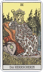 Под третьим номером, в списке Старших Арканов Таро расположилась Императрица. - земная Мать путешествующего Героя (Шута). Карта являет собой олицетворение женственности, природы и плодородия. В колоде Таро Райдеа Уэйта на карте изображена сидящая на троне женщина. Цвет трона -... Далее